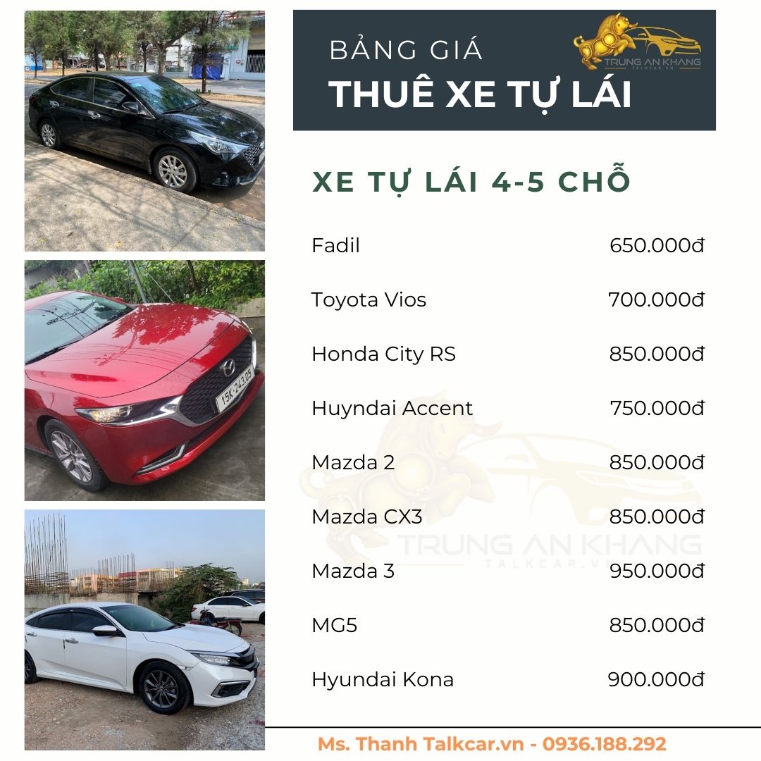 – Cho thuê xe tự lái : 4-7 chỗ đời mới